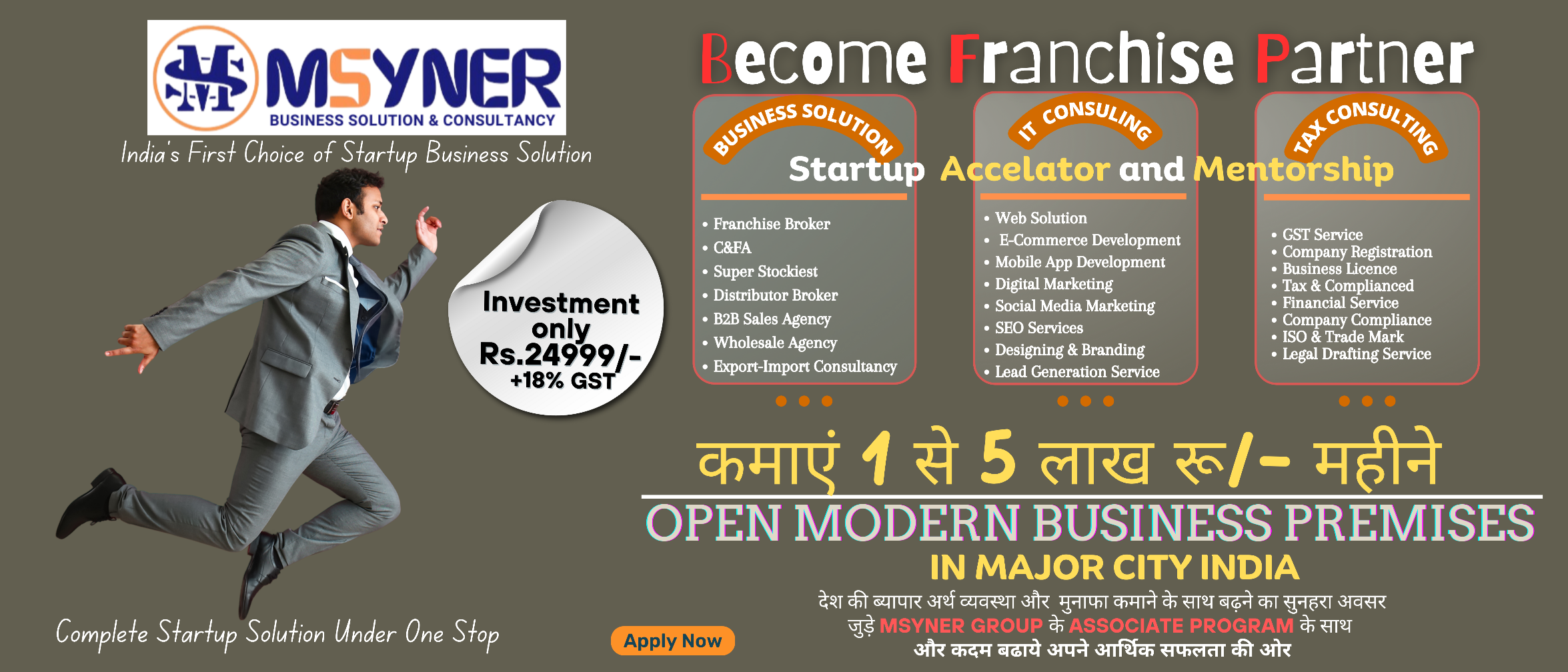 Msyner Group, an ISO 9001:2015 certified As a leading business consultancy company, our unique selling proposition (USP) is empowering businesses to expand their reach through strategic module. We specialize in franchise & distributor broker & consultancy, B2B Sales Agency identifying prime locations and thoroughly vetting applicants, ensuring all legal registration & tax consultancy is in order. By partnering with us, you’ll gain access to a best business of potential, enabling you to rapidly scale your business and reach a wider audience thoroughly develop our website designing & marketing through by our Expert SEO & social media management teams.
